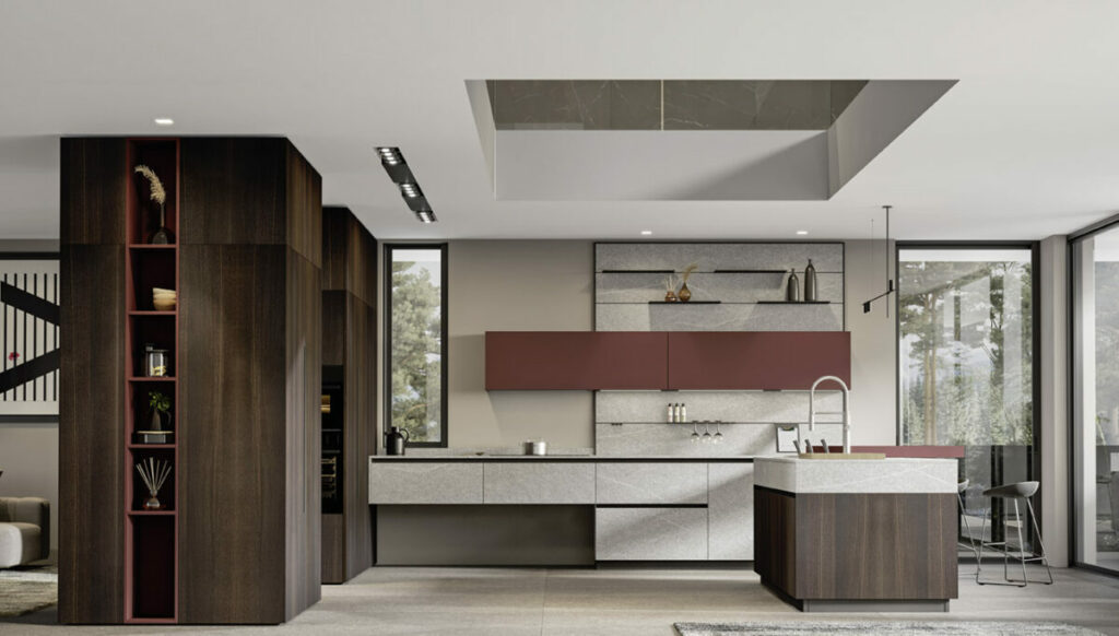 Un programma che racchiude una collezione di ben 18 diversi materiali di finitura declinati in oltre 150 varianti. Laccato, laminato, Fenix, acciaio, ecocemento e legno.